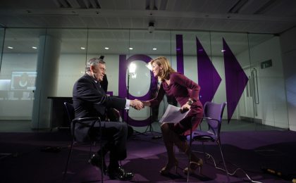 That done he was taken into a studio where he was interviewed by a TV crew and where I was the only photographer. I sat a couple of meters away from him and once I had been told by his aides to stop rolling around on the floor, I took the opportunity to listen to our illustrious leader. I listened to the interview, he was ironclad, and I can’t really offer you anymore insight. But under the scrutiny of the financial media you could tell he really saw it as his arena; at one point Mandleson had to wrap it up because Gordon just wouldn’t stop taking questions.