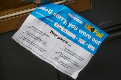 Once I’d finished photographing a box in various corners of Kensington we still wanted to try the delivery note idea. The Graphics Editor, Cath Levett had mocked-up a brilliantly sarcastic UK-Fail delivery note. Again after crumpling it, I gingerly wedged it into the front door of what looked like an empty town house and rushed the pictures back to the office.